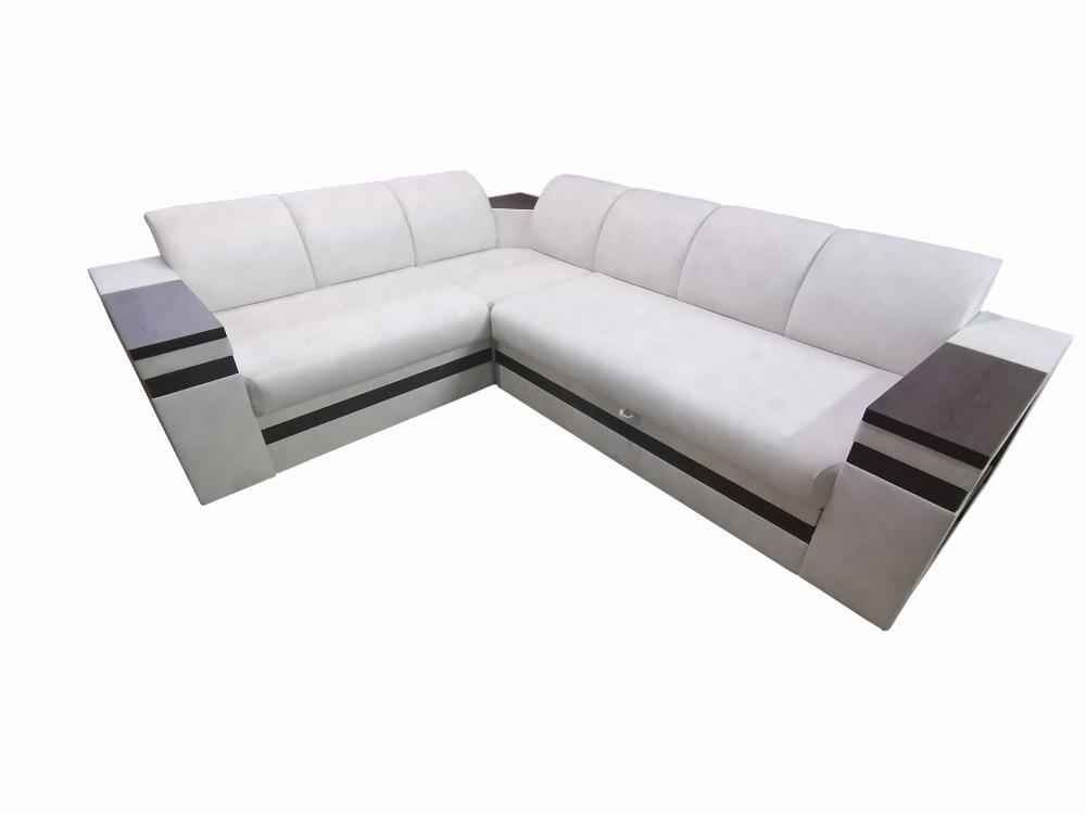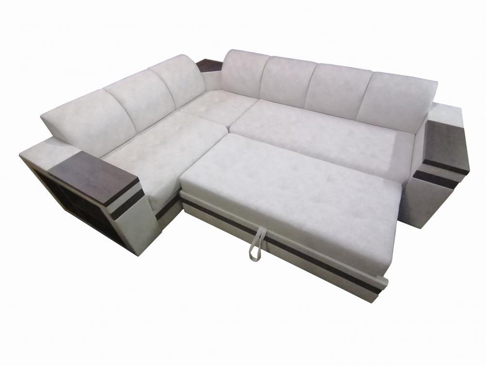 Диван-кровать Prestige создан для ценителей стиля и многофункциональности. Представленный образец имеет угловую конструкцию. Подлокотники оборудованы деревянными накладками и встроенными полками, которые могут выполнять функцию мини-бара. Внизу расположен просторный ящик для хранения постельных принадлежностей. Диван легко раскладывается, благодаря наличию простого механизма трансформации «Дельфин».