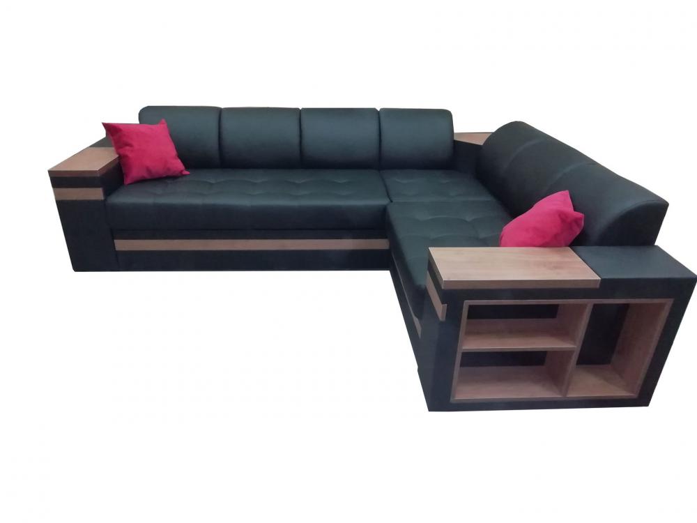 Диван-кровать Prestige создан для ценителей стиля и многофункциональности. Представленный образец имеет угловую конструкцию. Подлокотники оборудованы деревянными накладками и встроенными полками, которые могут выполнять функцию мини-бара. Внизу расположен просторный ящик для хранения постельных принадлежностей. Диван легко раскладывается, благодаря наличию простого механизма трансформации «Дельфин».