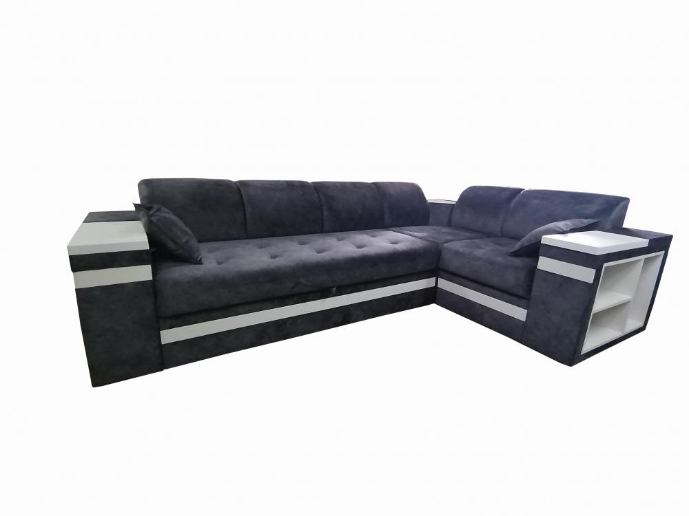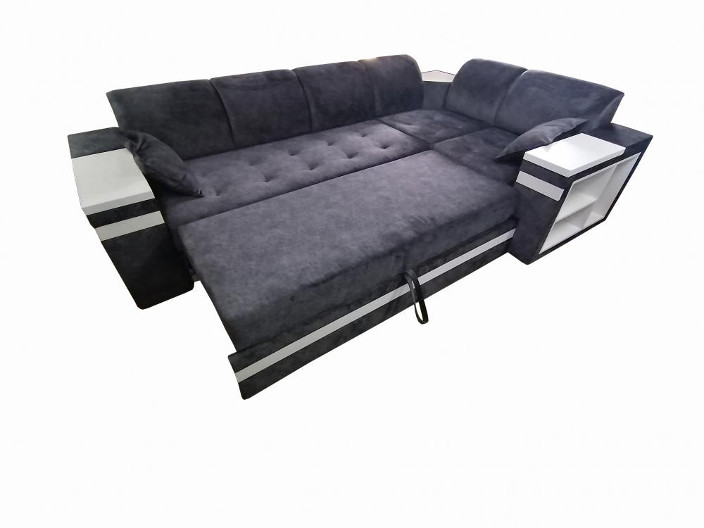 Диван-кровать Prestige создан для ценителей стиля и многофункциональности. Представленный образец имеет угловую конструкцию. Подлокотники оборудованы деревянными накладками и встроенными полками, которые могут выполнять функцию мини-бара. Внизу расположен просторный ящик для хранения постельных принадлежностей. Диван легко раскладывается, благодаря наличию простого механизма трансформации «Дельфин».